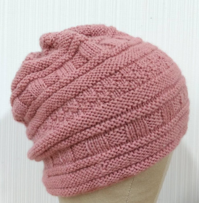 表編みと裏編みで模様編み帽子を編みました