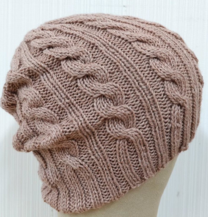 縄編み模様の帽子を編みました